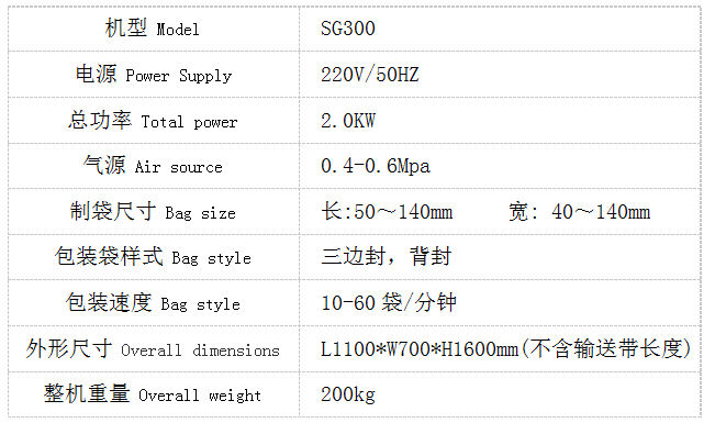 Performance parameters of trailer automatic packaging machine: